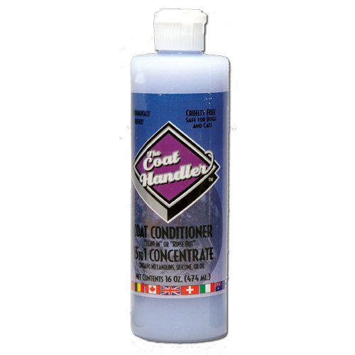 The coat handler leave-in conditioner soothes, reconditions, and moisturizes dry, irritated skin and coats. Easy-to-use formula contains no heavy lanolin, silicone, or oils. Leaves pets' coats manageable, healthy, full-bodied, and lustrous. Antistatic properties help to repel dirt and dust to keep coats cleaner longer. Coat handler leave-in conditioner is ideal for hand-scissored grooming. This concentrated dilutes 15:1. Available in 1-gallon container. Measures 12-inch length by 6-inch height by 6-inch width.