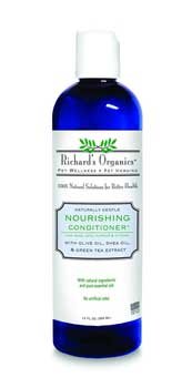 Richard's Organics Nourishing Conditioner is a 100% naturally gentle formula made with olive oil, shea oil and green tea extract to repair and protect the coat against environmental damage. Rich emollients & antioxidants nourish skin and leave the coat healthy and shiny.